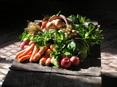 | This attractive pile of fruit and vegitables appears to have nothing whatsoever to do with chess. |