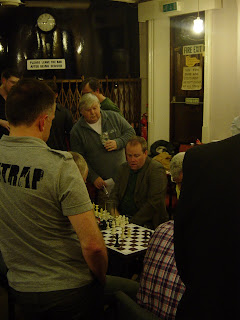 | Board 5 Prize Winner, Matthew Wedge-Roberts (front right) finishes off Jon Hughes of Huddersfield ‘B’, his 3rd round victim. |